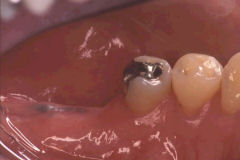2)よく相談した結果、失った大臼歯部にインプラント治療をすることになりました。 写真は手術後約10週間、インプラント体が骨とくっつき、びくともしなくなった状態です。 |